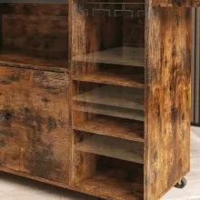 Introducing a versatile centerpiece to enhance your kitchen’s efficiency and style: the Vintage Brown Rolling Kitchen Island. This multi-functional piece is not just a kitchen cart, but a space-saving solution that combines elegance with practicality, catering to all your storage and entertainment needs.