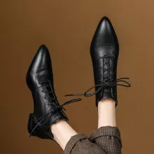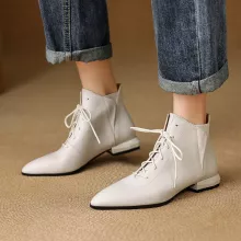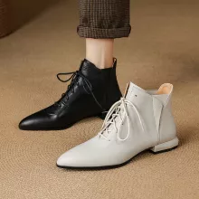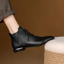 Stay warm, stylish, and comfortable with these genuine leather winter boots. Perfectly designed for the modern woman, these boots combine sleek, retro-inspired style with practical features that make them your go-to footwear for chilly days. Whether you’re heading out for a casual walk or need a reliable pair of boots for daily wear, these pointed-toe, lace-up ankle boots are your ultimate choice. The soft fleece lining and durable TPR sole offer the perfect balance of warmth and traction, keeping you comfortable in all types of winter weather.
