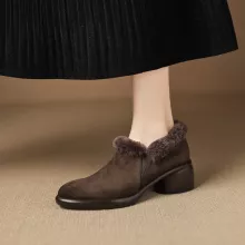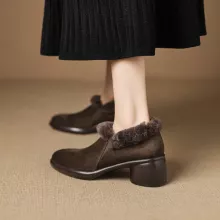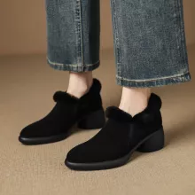 Perfect for everyday wear, these winter women pumps are ideal for dressing up or down, whether you’re heading to the office, out for brunch, or meeting friends for a casual outing. Their slip-on design means you can put them on effortlessly, while the plush lining keeps your feet cozy all day long. The kid suede leather adds an element of sophistication, elevating your look without compromising comfort.