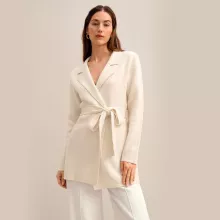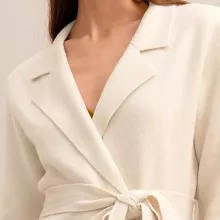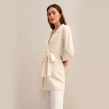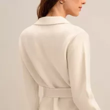 This blazer isn’t just clothing; it’s a statement in sophistication and style. Its unique blend of comfort and elegance makes it perfect for the discerning woman who values quality and design. The solid cream color ensures it can be paired with virtually any outfit, making it a versatile staple for your winter wardrobe. With its tailored fit and classic design, it’s best used for office wear, formal events, or any occasion where you want to make an impression.