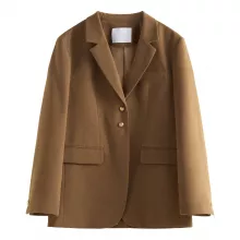 This brown faux suede blazer is perfect for a variety of occasions. Whether you’re heading to the office, meeting friends for a casual lunch, or enjoying a night out, this versatile piece adds a touch of elegance and warmth to any outfit. The loose fit makes it perfect for layering over sweaters or shirts, while the classic notched collar keeps you looking sharp and stylish.