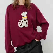 Step into cooler days with a hoodie that blends warmth, comfort, and playful charm. This winter crewneck top features an adorable puppy applique embroidery that brings a soft, age-reducing look while keeping your style polished for everyday wear. Designed with a relaxed, loose fit, it drapes naturally on the body for an easy, confident feel whether you’re at the office, running errands, or enjoying a casual weekend out.