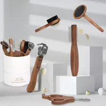 This set includes four different combs and a sturdy nail clipper, giving you all the tools you need for regular grooming at home. Each comb is crafted from smooth wood and durable stainless steel, offering a gentle glide that helps remove loose hair, detangle knots, and massage your pet’s skin. The nail clipper provides a clean, precise trim, helping keep paws healthy and comfortable. With sizes ranging from approximately 1.9 × 5.6 inches to 2.7 × 5.8 inches, these tools are easy to grip and comfortable to use.